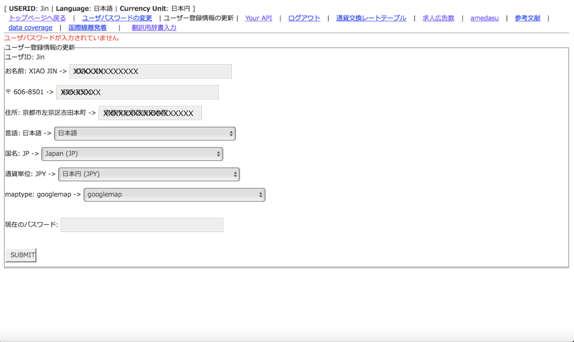 If you click [change user information], the page as shown below is displayed.