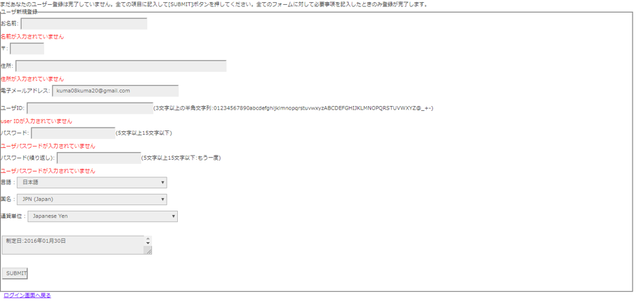 2. Click a link enclosed in an email sent to your email address and open a form to enter your registration information (valid for 24 hours).
