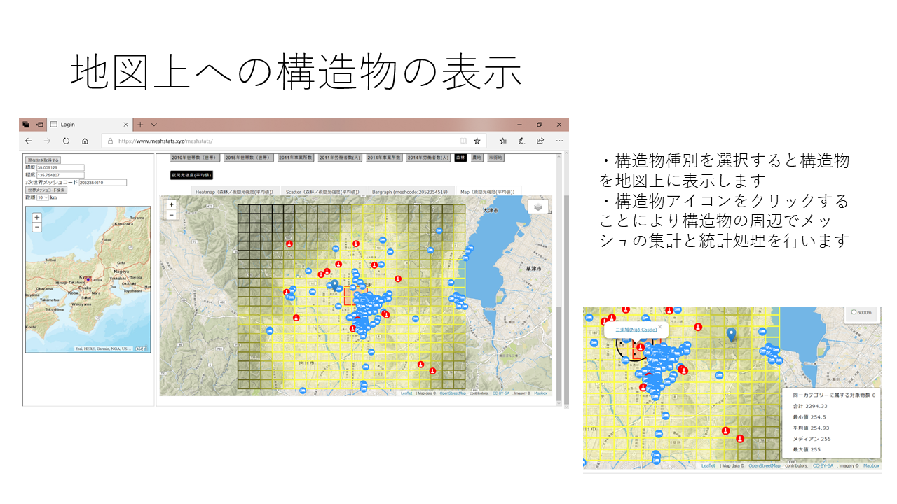 可能です。初期の表示はmapとなっています。mapは選択したメッシュ統計に対